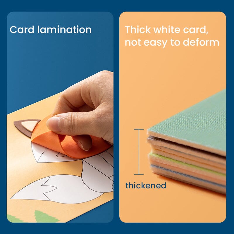 â„ăEducation Toys for Toddlersă: EVA stickers have distinct layers and rich colors, and need to be pasted layer by layer. Sticker games can enhance children's ability to recognize colors, exercise image thinking ability, and improve physical coordination ability and ability to solve difficulties.