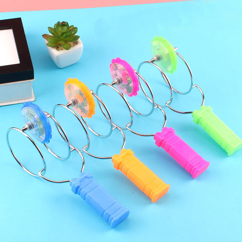 Rotate on the ground, place the top on the guide rail, and swing according to personal gestures. When the inertia reaches a certain level, the top will be thrown off, and the top will rotate and emit light.