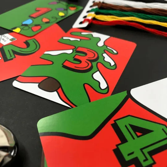 💖24 cards with original artwork contain pieces of a cross stitch pattern which when stitched over the course of December reveal a mystery Christmas scene.